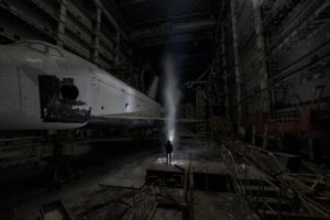 Le Cosmodrome a beau être le site de lancement le plus actif du monde, les vestiges de la conquête spatiale soviétique, et en particulier des programmes Bourane et Energia, sont toujours là, abandonnés depuis plus de 30 ans dans d’immenses hangars. Il faut parcourir des dizaines de kilomètres dans la steppe, sous couvert de la nuit, pour s’approcher de cette zone interdite.